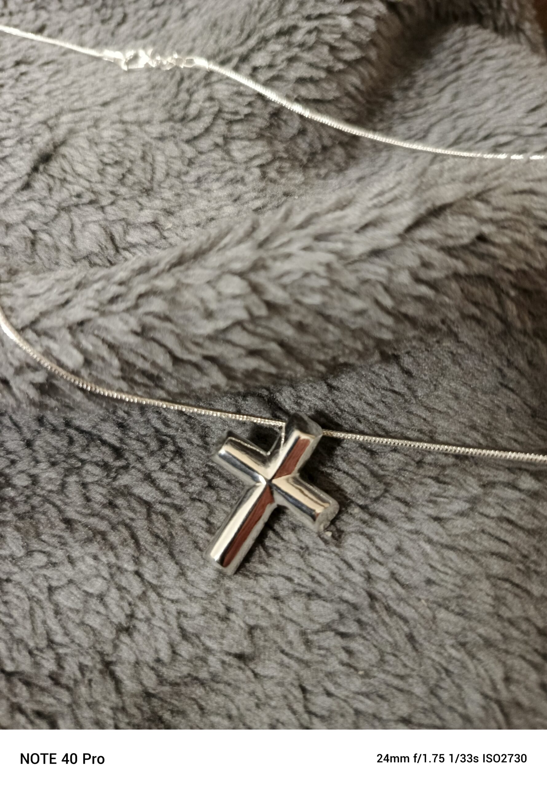 Srebrny łańcuszek z Krzyżem wykonany z próby 925. Posiada delikatny i elegancki design, idealny jako dodatek do codziennych lub wieczorowych stylizacji. Wspaniały prezent dla bliskiej osoby lub dla samego siebie.