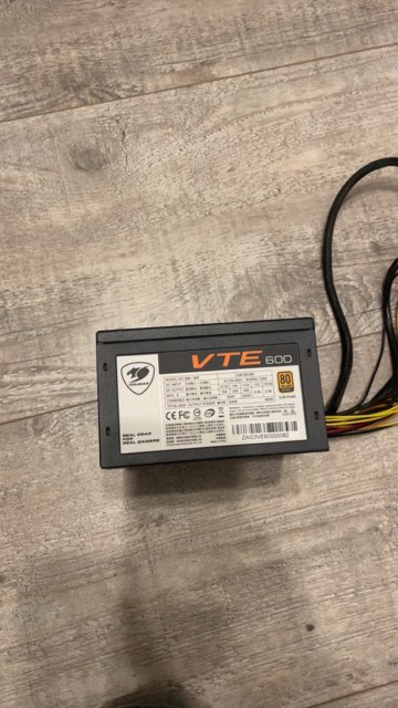 Zasilacz Cougar VTE 600W z certyfikatem 80 PLUS Gold, zapewniający stabilne zasilanie